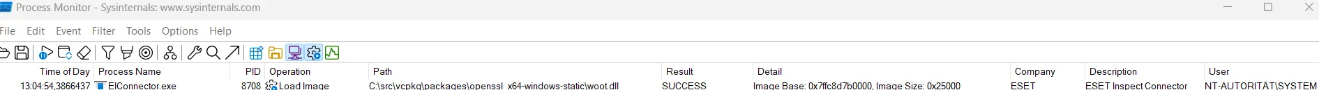 The vulnerability stems from how the OpenSSL library was built and integrated into the ESET Inspect Connector. The library was compiled with a hardcoded configuration path pointing to a build artifact directory: C:\src\vcpkg\packages\openssl_x64-windows-static\openssl.cnf.